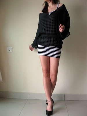 Comes with a stretchable spaghetti striped dress/long top